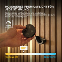 Schwarze LED-Streifen für Akustikpaneele.