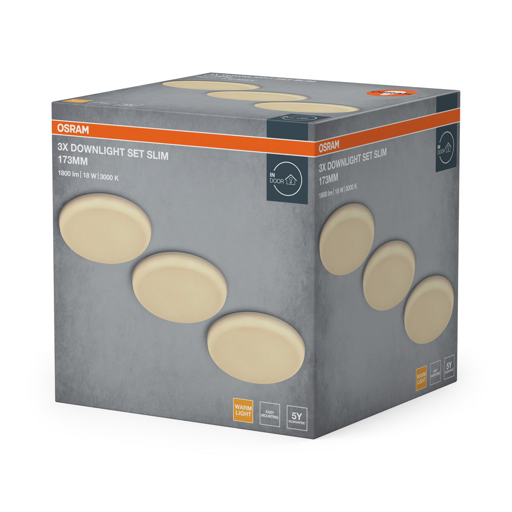 OSRAM LED Downlight Adjustable Cut-Out Slim Einbaustrahler Set 173 mm 18W 830 Weiß ⌀55…145 mm