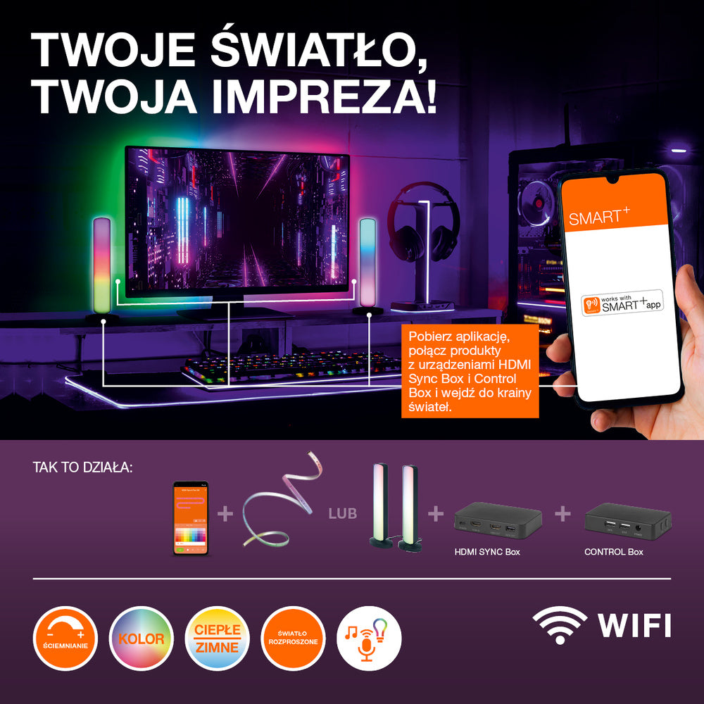 OSRAM Wifi SMART+ CORNER MAGIC Tischleuchte, RGB, 77lm, 7.5W, Remote Control, Schwarz