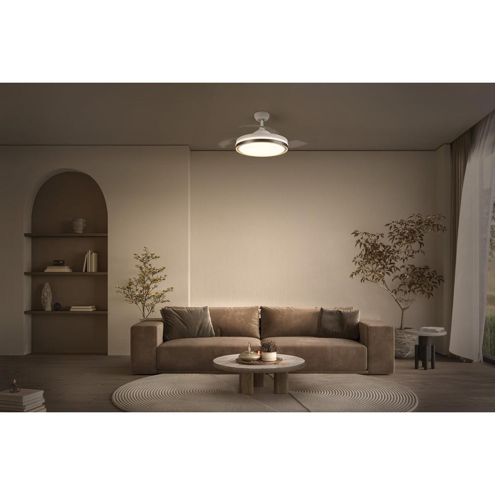Uitschuifbare LED-plafondventilator die licht en ventilatie combineert.