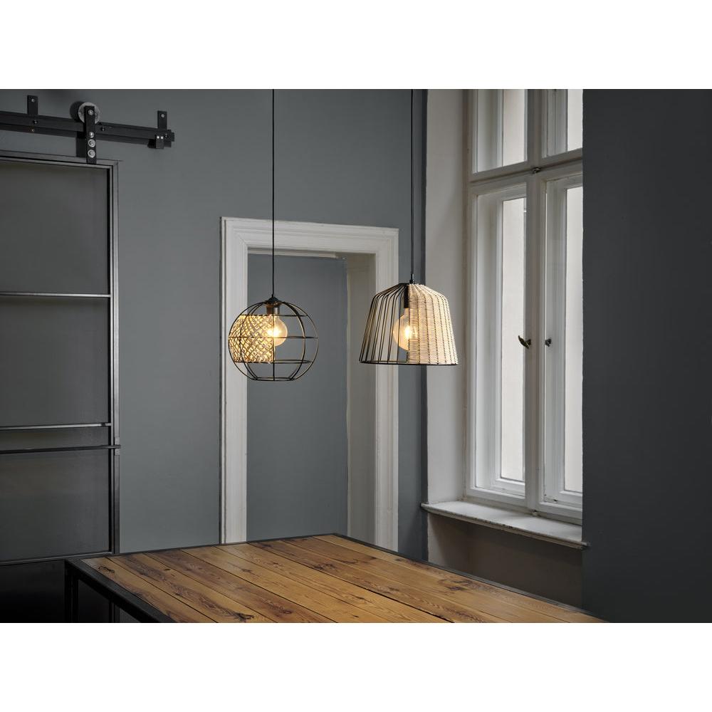 DECORATIEF: De lamp van rotan en metaal heeft een aantrekkelijk, open kooiontwerp dat perfect past bij de industriële stijl.