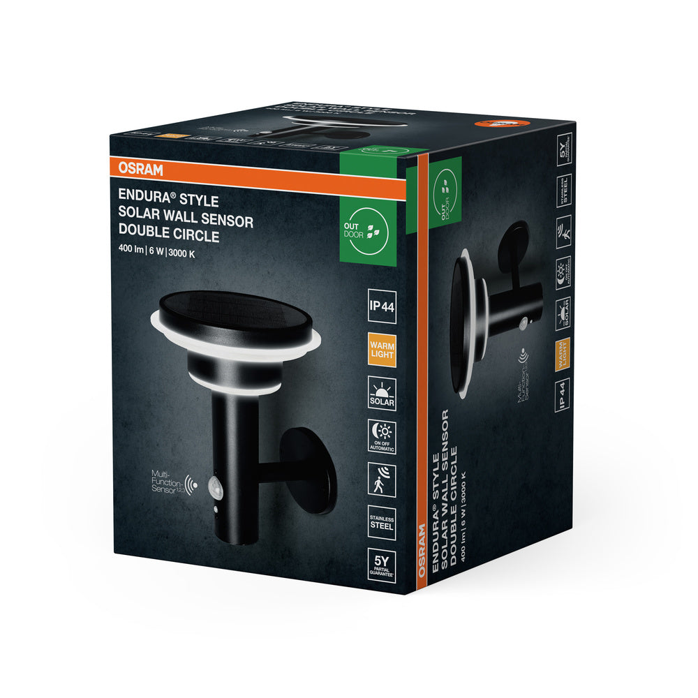 Lantaarnlampen op zonne-energie met bewegings- en lichtsensoren, twee lichtringen.