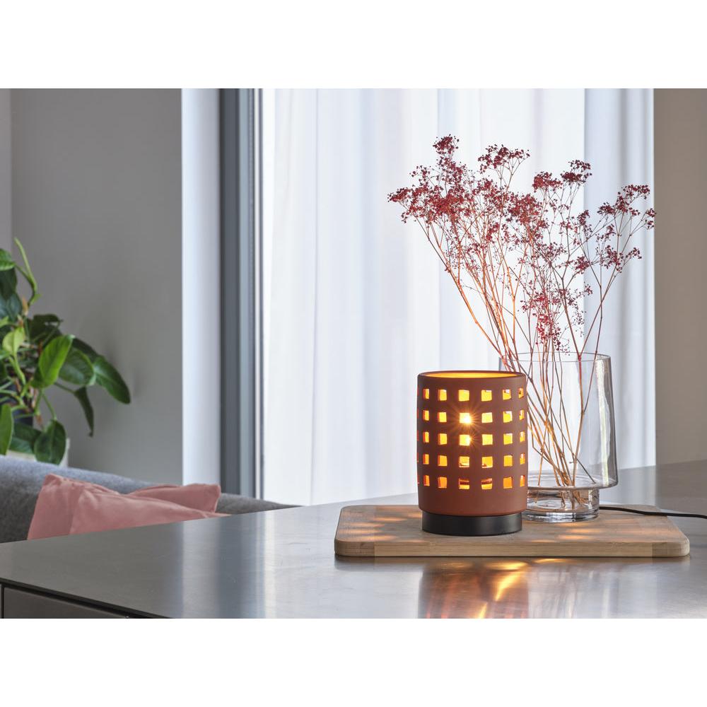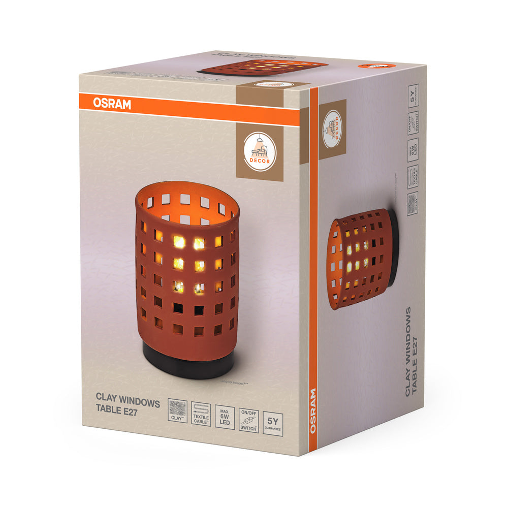 Zoekt u een stijlvolle tafellamp voor uw huis? De OSRAM DECOR Clay Windows tafellamp in bruin combineert een decoratief kleidesign met metaal en creëert zo een warme, elegante sfeerverlichting in elke kamer. De lamp is bovendien voorzien van een vervangbare lamp, wat zorgt voor flexibiliteit en duurzaamheid.