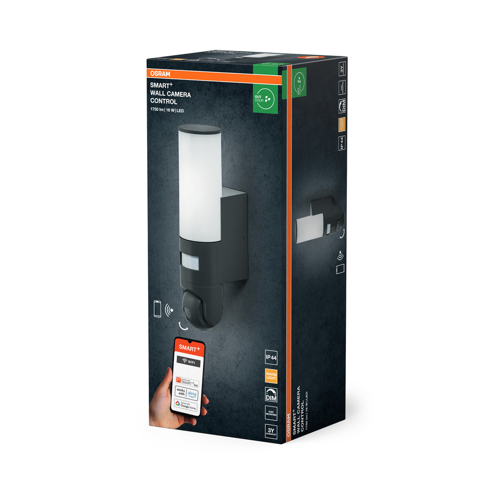 OSRAM Wifi SMART+ Muurcamera Bediening Tuinlamp met HD-camerasensor 16W / 3000K Warm Wit