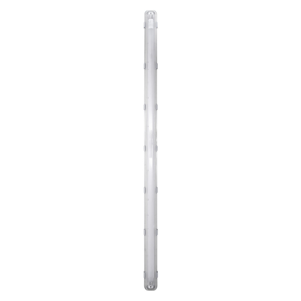 Dampdichte armaturen voor LED-buizen. Productkenmerken: Vochtdichte armatuur met LED-buis voor netspanning. Duurzame en energiebesparende LED-armatuur. Stof- en waterbestendig (IP65). Kwikvrij en RoHS-conform. M20 kabelwartel voor kabels van 8-12 mm. Niet dimbaar. Productvoordelen: Energiebesparing tot 65% ten opzichte van armaturen met T8 fluorescentielampen op CCG. Eenvoudige installatie dankzij de verbeterde ruimte voor de montagebeugels en de gemakkelijk te openen kap. Snelle en eenvoudige lampvervanging. Extreem breukvaste LED-buis Star PC LED-buis meegeleverd. Goede, gelijkmatige verlichting. Toepassingsgebieden: Kelders, garages, magazijnen. Uitsluitend voor gebruik binnenshuis. Technische specificaties: LED-buis STAR PC EM wordt meegeleverd. 1265 mm x 72,0 mm x 86,0 mm